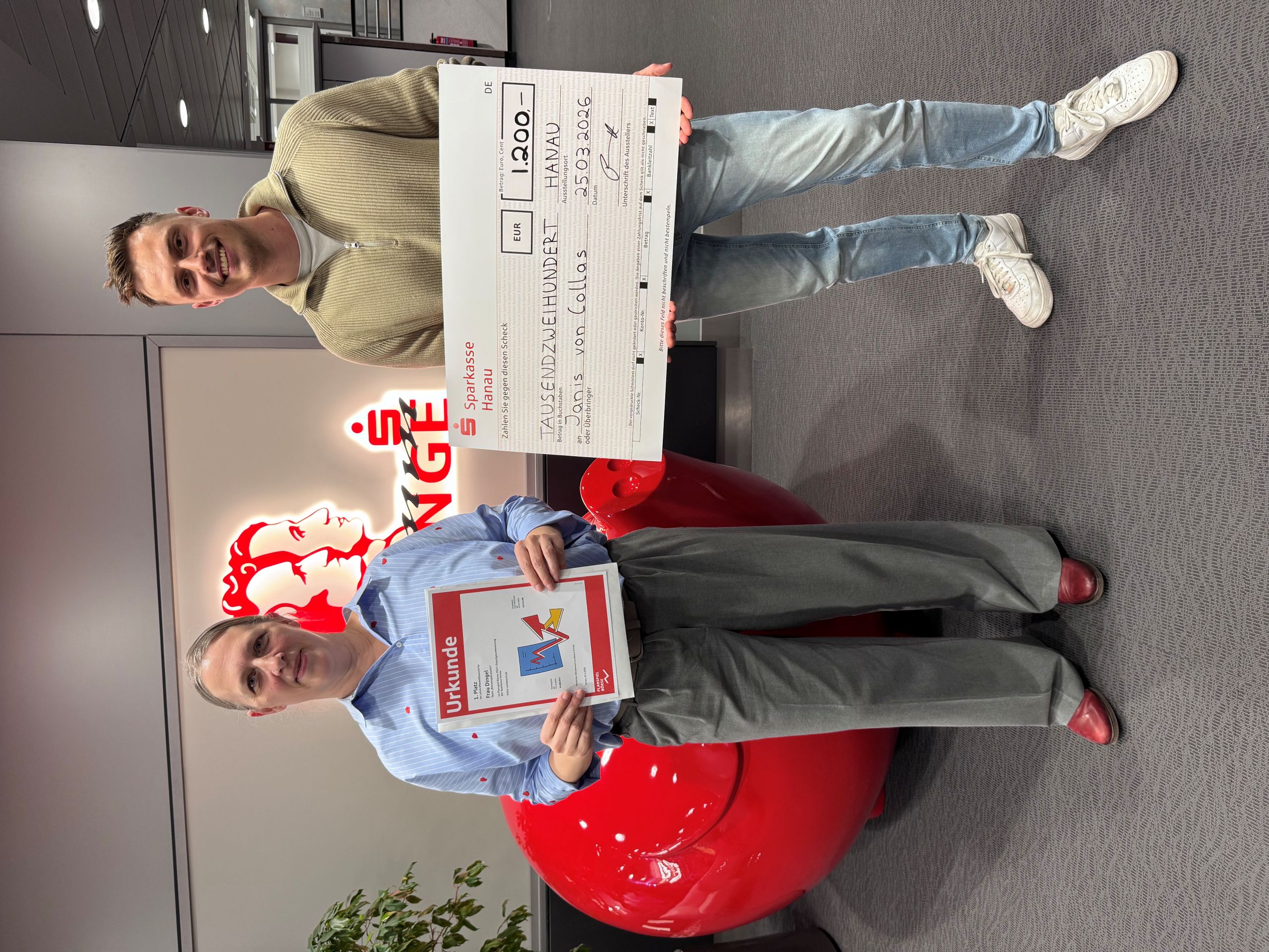Doch damit war die Erfolgsserie der HOLA auf der Siegerehrung der Sparkasse Hanau am 25. März 2026 noch nicht zu Ende. Geehrt wurde auch Verena Dingel, die beste Lehrerin beim Planspiel Börse.