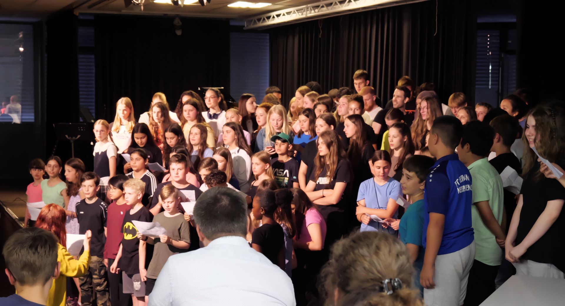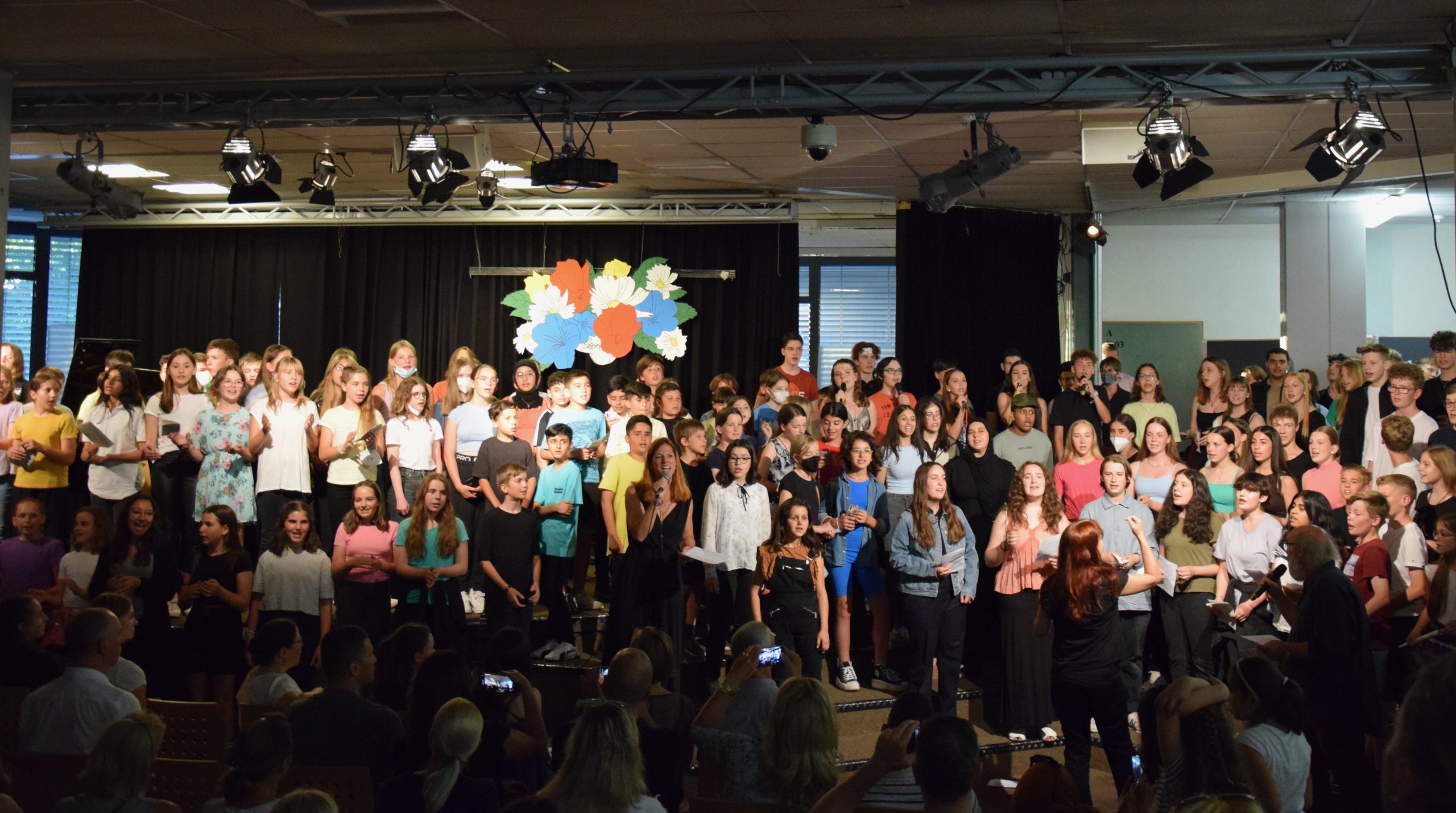 Bild: Klassenchöre der Unter- und Mittelstufe und Gesangsensembles aus den Klassen 7B und 7D sowie Chorgruppen mit bis zu 70 Schülerinnen und...